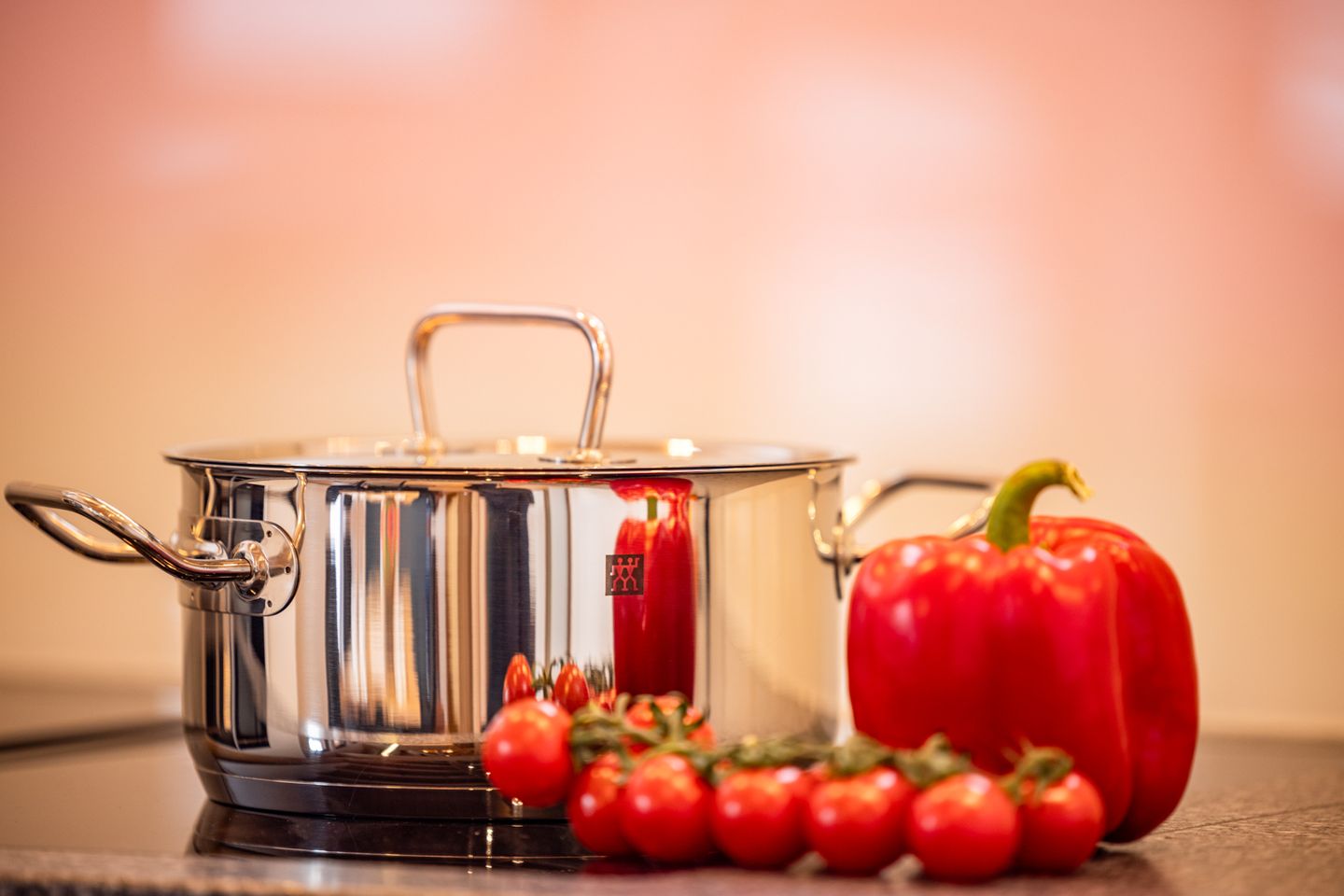 Der offen gestaltete Wohnbereich mit Küche ist das Herzstück der Wohnung. Große Fenster eröffnen den Blick auf die Berchtesgadener Bergwelt und lassen das wechselnde Licht der Alpen zu jeder Tageszeit spürbar werden. Die Küche ist vollständig ausgestattet, verfügt über eine Spülmaschine und eine hochwertige Naturstein-Arbeitsplatte und lädt zum gemeinsamen Kochen ein. Für zusätzlichen Komfort stehen WLAN, Smart TV und ein Sonos Soundsystem zur Verfügung. Auch Waschmaschine und Trockner sind vorhanden.