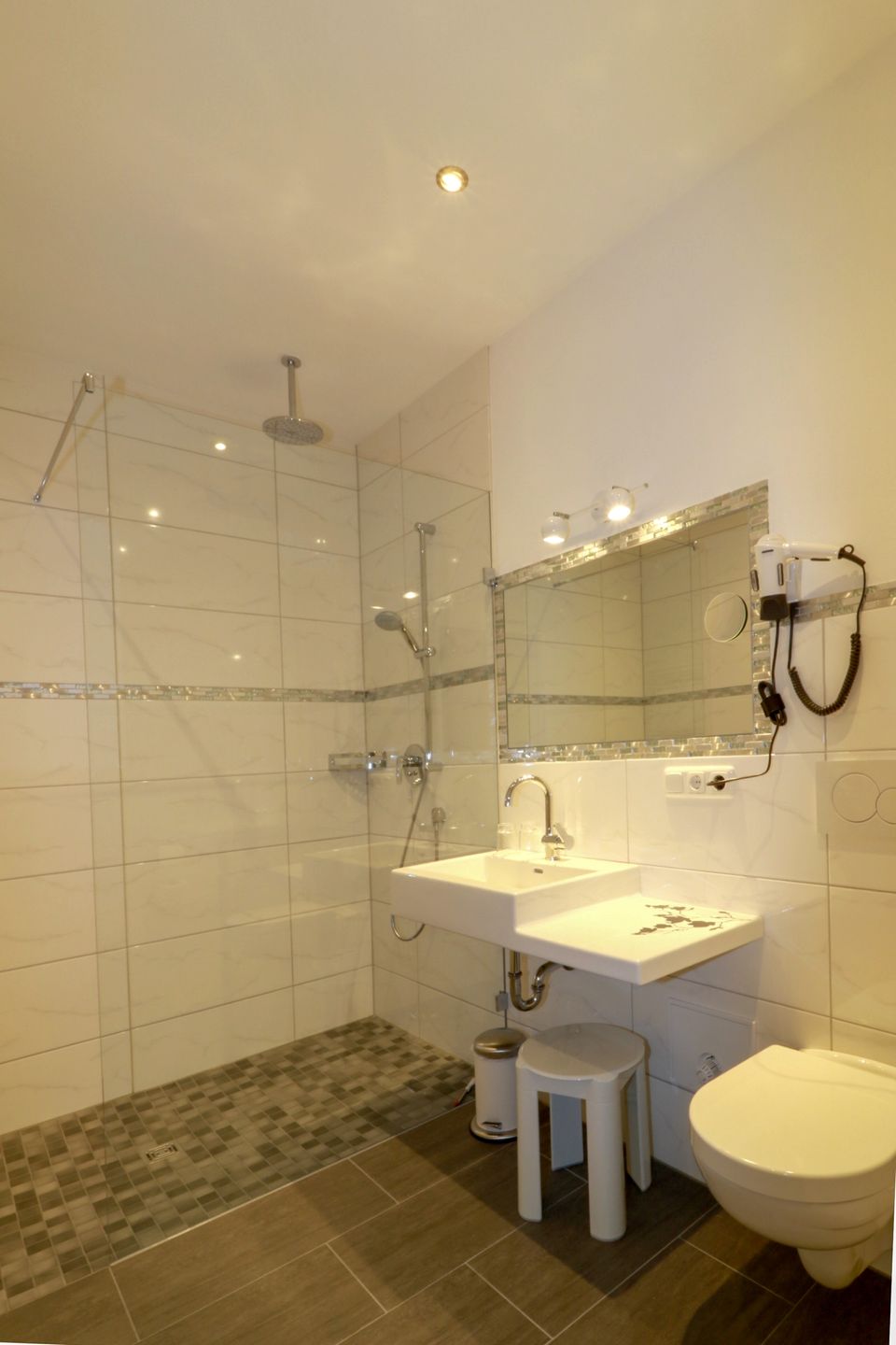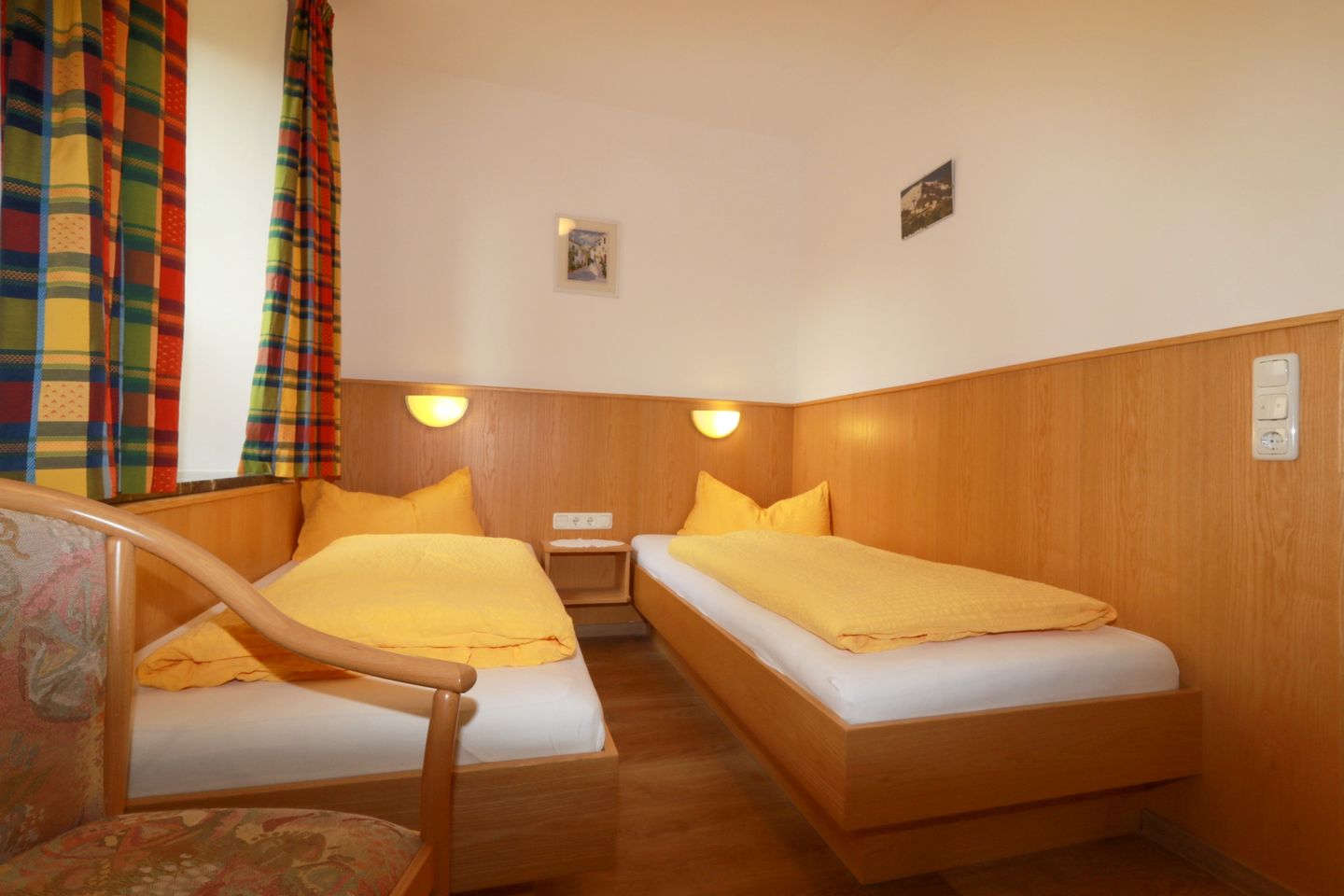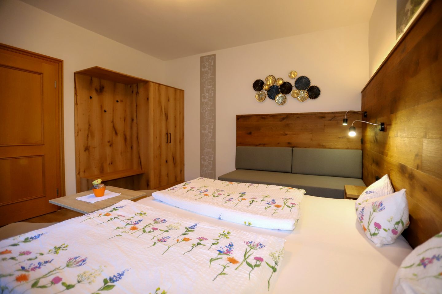 Die Parterrewohnung verfügt über zwei separate Schlafzimmer, eines mit Doppelbett und einem Einzelbett und eines mit zwei getrennten Einzelbetten. Zwei Badezimmer jeweils mit Dusche, Waschbecken, Haartrockner und WC sorgen für maximalen Komfort während Ihres Aufenthalts. Die offene Küche ist umfassend ausgestattet und grenzt direkt an den gemütlichen Wohn- und Essbereich. Hier finden Sie einen Ceranherd, Backofen, Kühlschrank, Mikrowelle, Geschirrspüler, Kaffeemaschine, Wasserkocher, Toaster sowie sämtliches Geschirr und Besteck. Ein Esstisch sowie eine bequeme Sofaecke mit TV laden zum Verweilen ein. Die großzügige, überdachte Terrasse ist mit Gartenmöbeln und Sonnenliegen ausgestattet und bietet einen direkten Zugang zum Garten. Dort stehen Ihnen ein Grillplatz mit Grill zur Verfügung – ideal für gesellige Stunden an der frischen Luft mit Blick auf die umliegende Natur. Die Wohnung und die Anlage rund ums Haus sind für Familien bestens geeignet: Gesellschaftsspiele, ein Spielplatz mit Schaukel, Rutsche, Trampolin und eine Liegewiese sorgen dafür, dass auch die Jüngsten auf ihre Kosten kommen. WLAN, ein Privatparkplatz sowie E-Bike- und E-Auto-Ladestationen direkt am Haus sind vorhanden. Im gemeinschaftlichen Waschraum finden Sie eine Waschmaschine und einen Trockner zur Mitbenutzung (gegen Gebühr).
