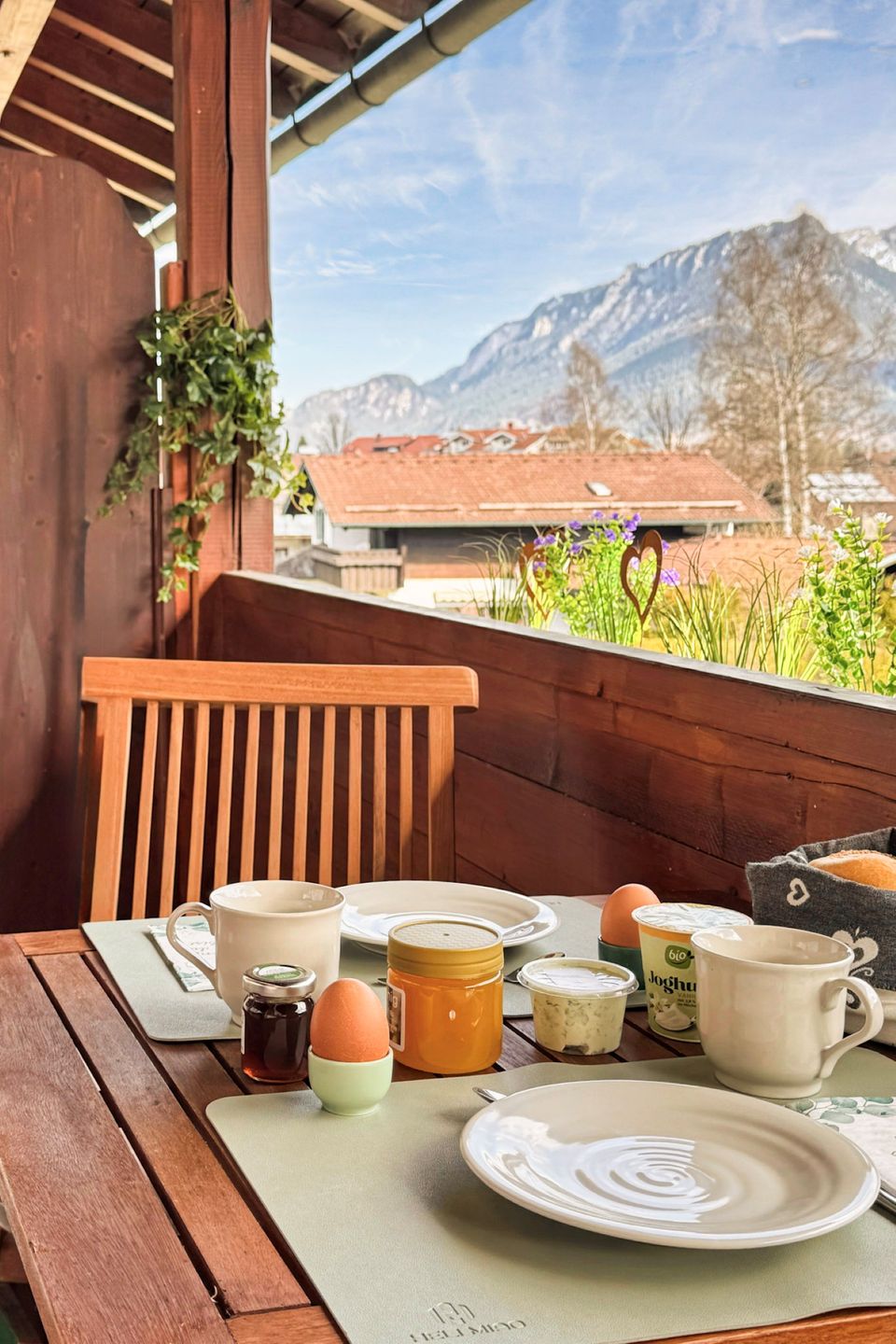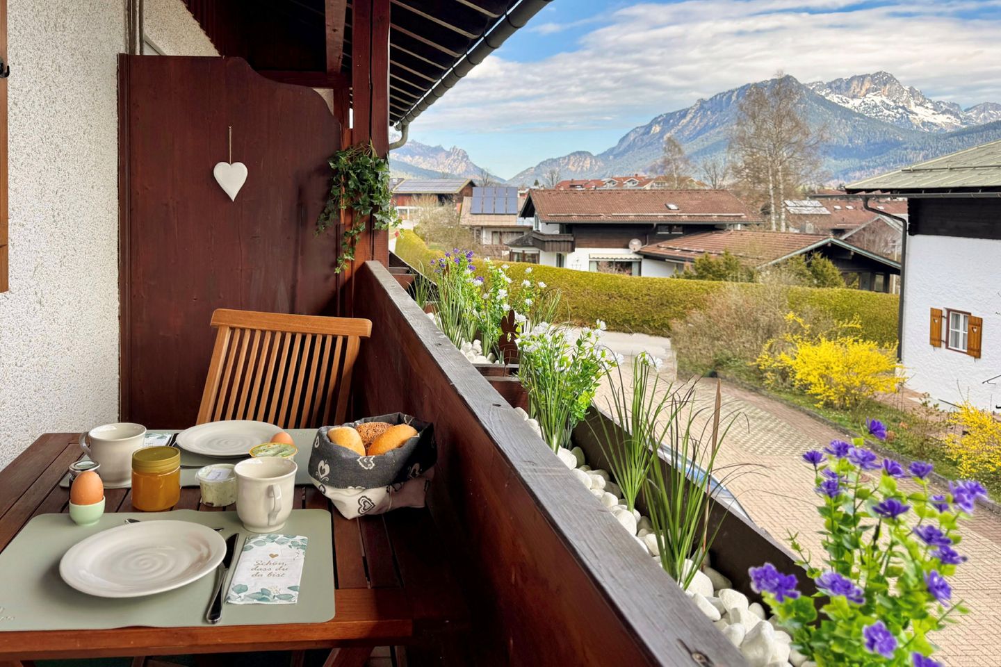 + Balkon-Glück: zwei große, möblierte Nichtraucher Balkone mit Südost-Ausrichtung: Frühstück in der Morgensonne mit Blick auf die „Schlafende Hexe“ und den Kehlstein - entspannte Stunden am zweiten sonnigen Balkon mit Lounge-Ecke.