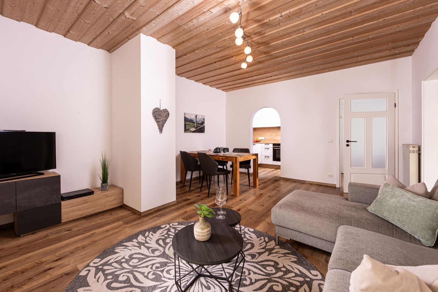 Ein besonderes Highlight ist die private Terrasse mit Blick auf die umliegende Bergwelt – der perfekte Ort für entspannte Stunden. WLAN und ein eigener Parkplatz direkt am Haus stehen kostenfrei zur Verfügung, eine gemeinschaftlich nutzbare Waschmaschine kann gegen Gebühr genutzt werden.